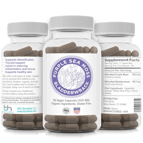 Specification: Purple Seamoss + Bladderwrack Seaweed Capsules – 2202mg Complete Nutrient Profile, Wildcrafted & Wildharvested, Made in the USA, Rich in Minerals, 60 ct