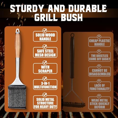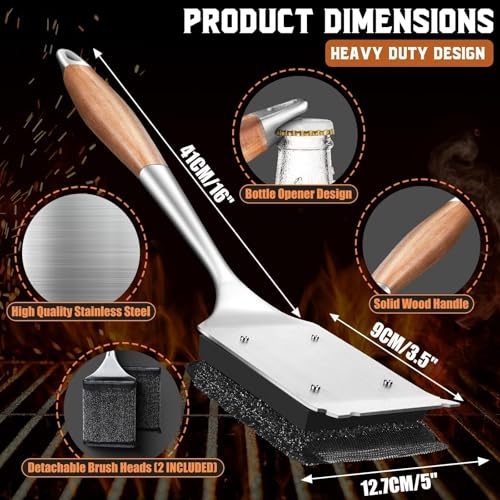 3-in-1 Functionality: This versatile non wire grill brush combines a scraper, a grill brush, and a bottle opener into one tool. Whether you’re scraping off tough residue or opening a cold drink, this multi-functional design makes grilling more convenient and enjoyable.