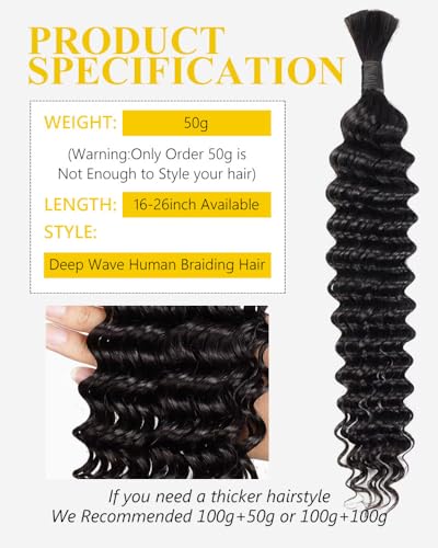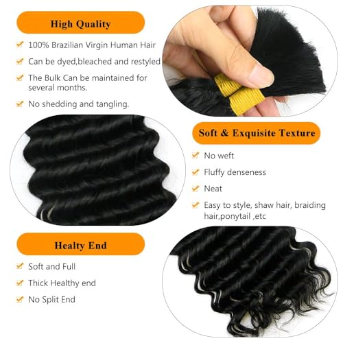 Specification: QTHAIR Deep Wave Bulk Human Hair For Braiding 16A No Weft (20″ 50g #1B(Natural Black)) 100% Unprocessed Brazilian Deep Wave Human Hair Virgin Hair Extensions Two Bundles Micro Braiding
