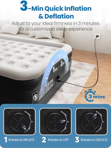 3-Min Quick Inflation & Deflation: Set up your air bed in just 3 minutes with our built-in 120V electric pump. The mattress inflates quickly through a single valve, achieving full firmness faster than brewing your morning coffee! The mattress measures 80×60×18 inches, and packs away neatly in the included backpack for easy storage and transport