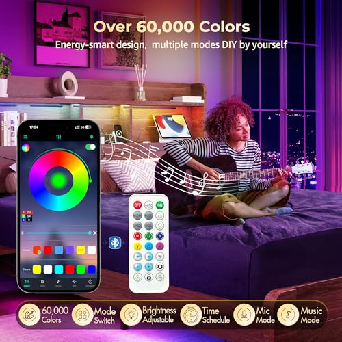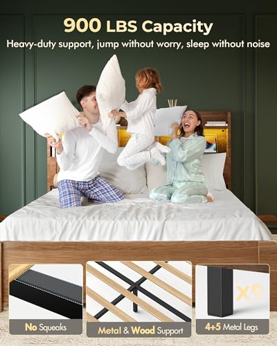 ✅ RGB LED LIGHTS WITH APP & REMOTE CONTROL: This wooden bed frame with smart LED lights offers over 60,000 colors, adjustable brightness, and multiple modes (timer, music sync, voice control, static, flicker, gradient, etc.), creating a relaxing, romantic, or cool gaming and movie-watching experience. Energy-efficient and eco-friendly, it’s the perfect modern furniture addition for any bedroom, dorm, or apartment