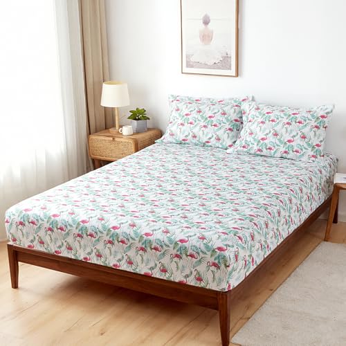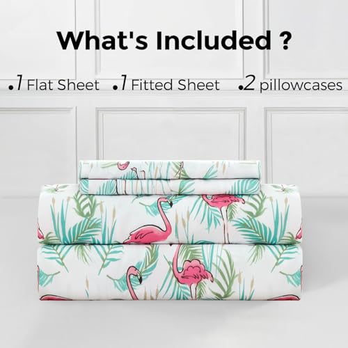 Specification: Queen Sheet Set, 4 Piece Bed Sheets for Queen Size Micro Boho Printed Bed Set, 17 Inch Sheets Deep Pocket, Soft and Breathable Microfiber, Wrinkle Free, Flamingo Plants Patterned Double Bedding