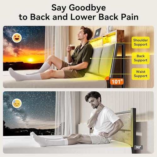 Ergonomic Design: We have determined through extensive testing that a tilt angle of 101° for the headboard provides the most comfortable support for your back. You can enhance your relaxation by leaning against the headboard
