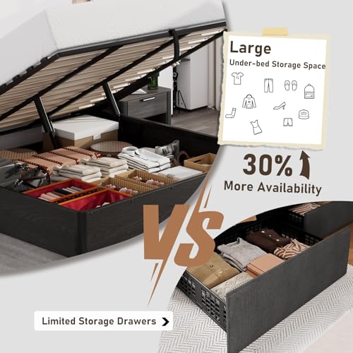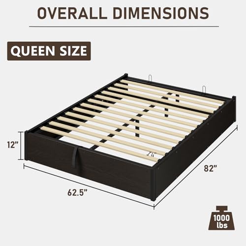 Specification: Queen Size Lift Up Storage Platform Bed Frame, Metal Bed Frame with Wooden Slats Support, No Box Spring Needed, Large Storage Space, Noise Free, Easy Assembly, Black