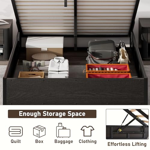 Queen Size Lift Up Storage Platform Bed Frame, Metal Bed Frame with Wooden Slats Support, No Box Spring Needed, Large Storage Space, Noise Free, Easy Assembly, Black