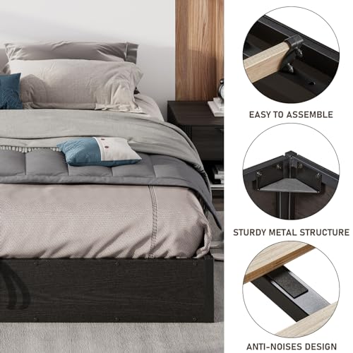 SOLIID & STURDY-Bed frame is made of strong metal structure, 12 high-quality wood slats, provides a solid foundation for the bed, maximum weight capacity of 1000bls, support your mattress perfectly.