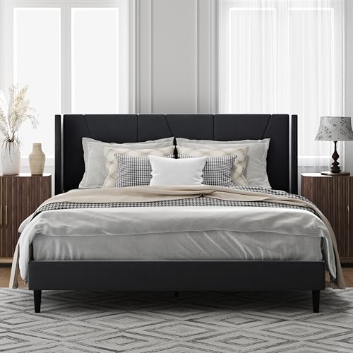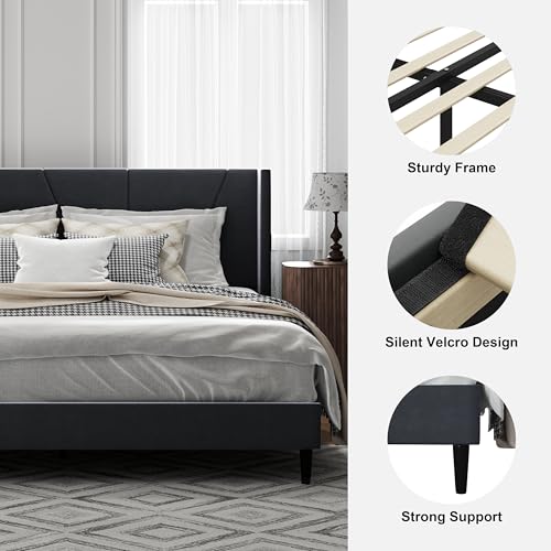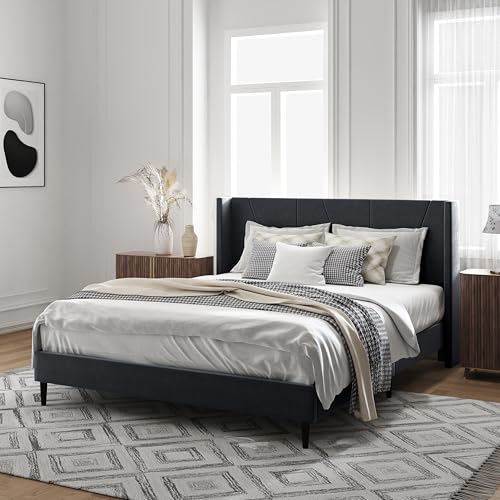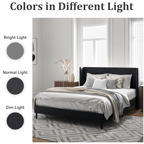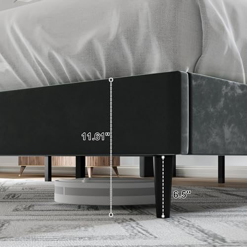 Sturdy Construction: The upholstered platform bed is constructed with a steel frame and thick wooden slats, paired with heavy-duty support legs, ensuring durability and the ability to support up to 1,000 pounds.