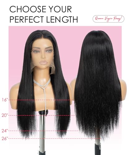 QUEEN VIRGIN REMY QVR Straight Hair Lace Front Wigs Human Hair 13×5 Lace Front Wig 180 Density HD Transparent Pre Plucked Glueless Lace Frontal Wigs for Women Natural Black 16 Inch