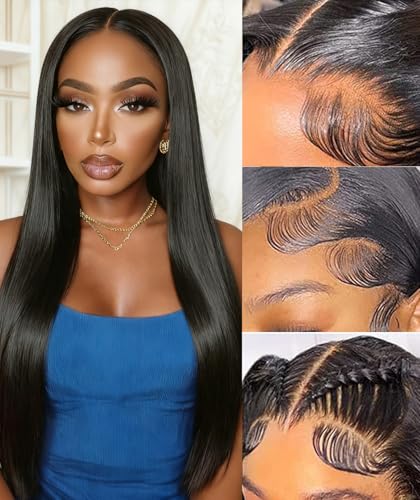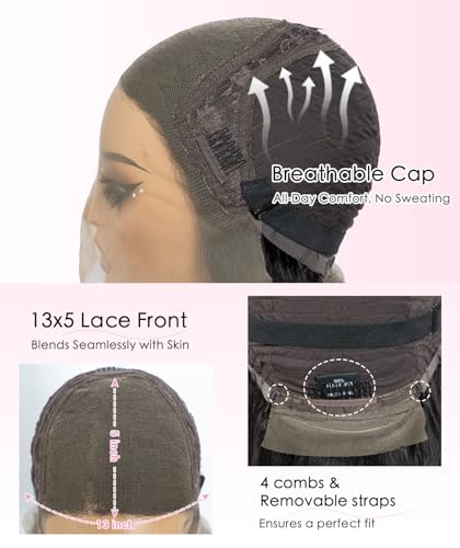 Lace Front & Pre-Plucked Hairline: QVR straight human hair wig lace area allows for versatile parting (middle, side, and even three-part) while the pre-plucked hairline with baby hairs eliminates the need for tweezing, giving you a realistic look right out of the box.