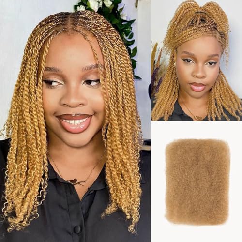 Specification: QVR Afro Kinkys Bulk Human Hair for Dreadlock Extensions Repair Locs 22inch 4 Packs 200 Gram, Honey Blonde Color Mini Spring Twist Afro Kinky Human Hair for LocKs