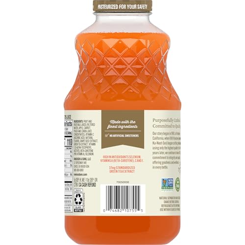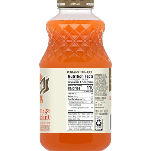 R.W. Knudsen Family Simply Nutritious Mega Antioxidant Beverage unites the finest ingredients to provide you with the ultimate pick-me-up. Apple, carrot, peach, and lemon ingredients combine with grape seed extract, green tea extract and other ingredients to create a deliciously complex flavor profile. Plus, this 100% juice has no sugar added (Not a low calorie food. See nutrition information for calorie and sugar content), is Non-GMO Project Verified, and high in antioxidants selenium, vitamins A (Beta Carotene), C and E. Add R.W. Knudsen Family Simply Nutritious Mega Antioxidant Juice Blend to your morning routine for a rejuvenating way to start your day.