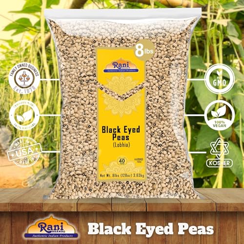 Rani Black Eyed Peas, Dried Cowpeas (Lobhia) 128oz (8lbs) 3.63kg Bulk ~ All Natural | Vegan | Kosher | Gluten Friendly | Product of USA