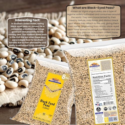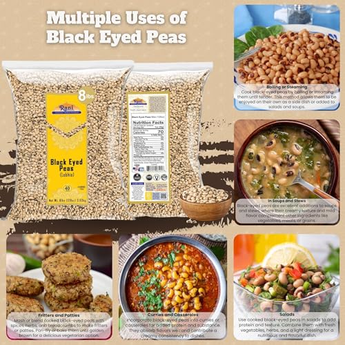 Specification: Rani Black Eyed Peas, Dried Cowpeas (Lobhia) 128oz (8lbs) 3.63kg Bulk ~ All Natural | Vegan | Kosher | Gluten Friendly | Product of USA