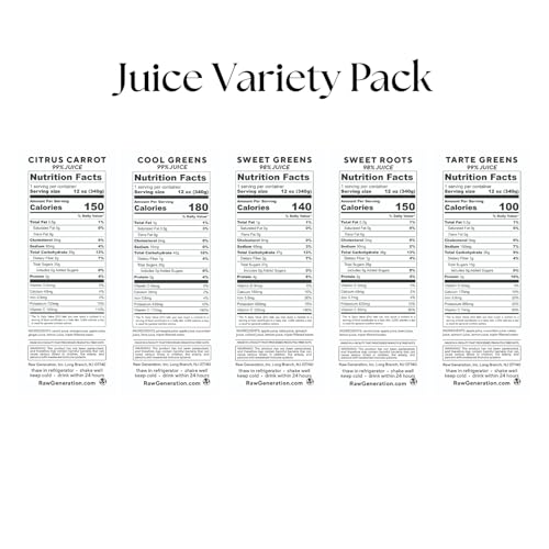 Specification: Raw Generation Best-Sellers Pack – Cold Pressed Juices in 5 delicious flavors- Nutritionist-Designed for Weight Management, Stronger Immunity & Increased Energy (42 bottles)