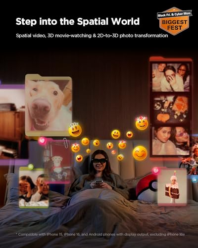 [Versatile Display Modes] Switch between Game Mode (120 Hz refresh rate), Movie Mode (deep contrast and color), and Standard Mode for everyday tasks. One-button mode switch—no pairing, no App required.⚠️ Please Note: These AR glasses require your device’s USB-C port to support DisplayPort Alt Mode (DP Alt Mode) for video output.