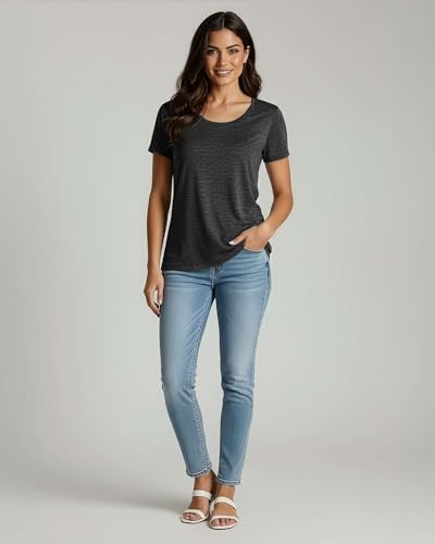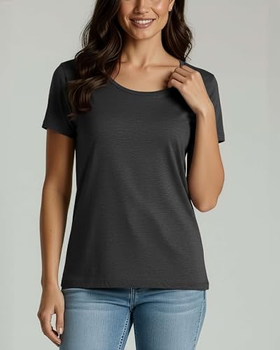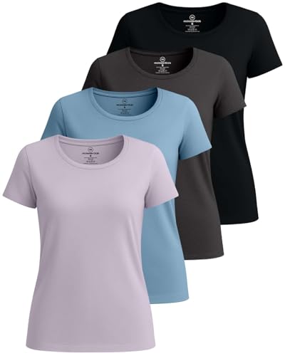 Real Essentials 4 Pack: Women’s Cotton Short Sleeve T-Shirt – Casual Scoop Crew Neck Tops Tee (Available in Plus Size)