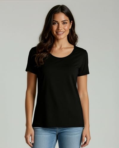 Specification: Real Essentials 4 Pack: Women’s Cotton Short Sleeve T-Shirt – Casual Scoop Crew Neck Tops Tee (Available in Plus Size)