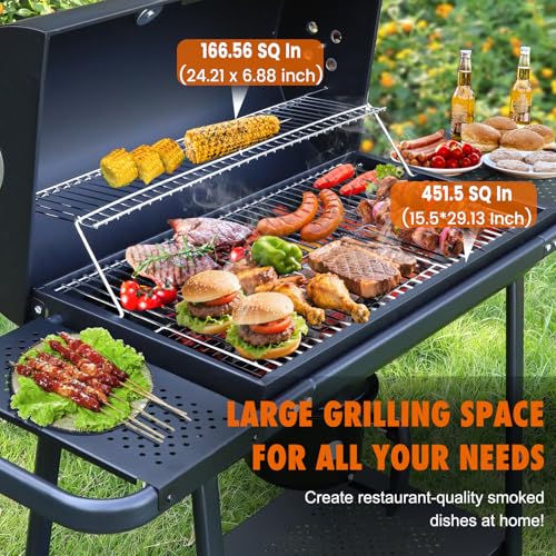Ample Cooking Area for Parties: With 608.4 sq. in. of total cooking space, our bbq grill offers a spacious charcoal grill experience for up to 5-6 people, ideal for family gatherings and friends’ cookouts. Perfect as an outdoor grill or backyard grill centerpiece for unforgettable moments