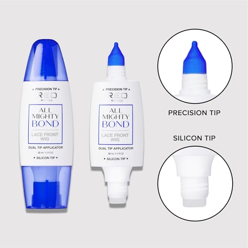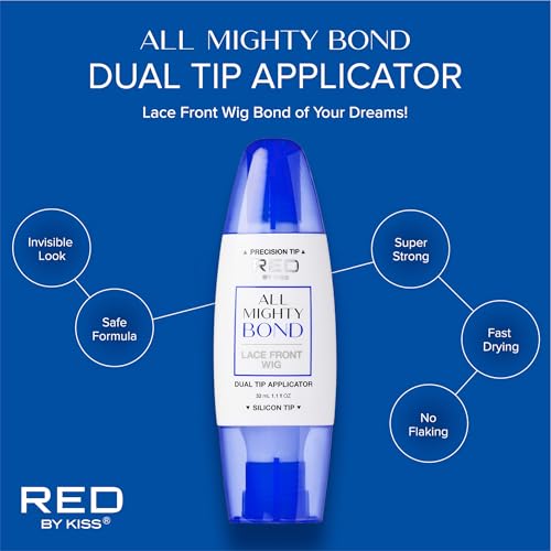 Specification: Red by Kiss All Mighty Bond Lace Front Wig Glue, Dual Tip Applicator, Instant Drying, Water Resistant, Strong Hold for Wigs, Frontals, Toupees, Safe for Sensitive Skin