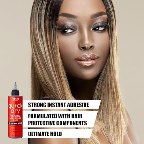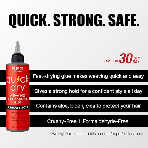 Specification: Red by Kiss Quick Dry Hair Bonding Glue, Professional Strong & Long-Lasting Weave Adhesive, Formaldehyde Free, Aloe Vera & Biotin Infused, Quick Weaving & Hair Extensions (8 fl.oz)