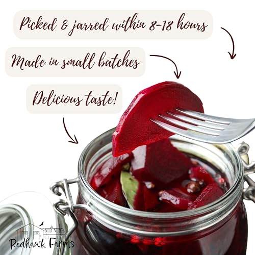 WHOLE, FRESH BEETS: Redhawk Farms old fashioned Pickled Baby Beets combines beets with premium ingredients, and jars them for peak freshness and flavor. Beets are jarred within 18 hours of being picked.