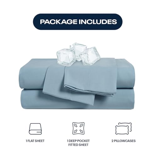 Reebok Queen Sheet Set from Tencel Eucalyptus – Soft, Cooling & Breathable for Hot Sleepers, Deep Pocket Up to 17 Inches, 4Pc Hotel Luxury Bedding Set, Bedsheet & Pillowcases (Niagara Mist, Queen)