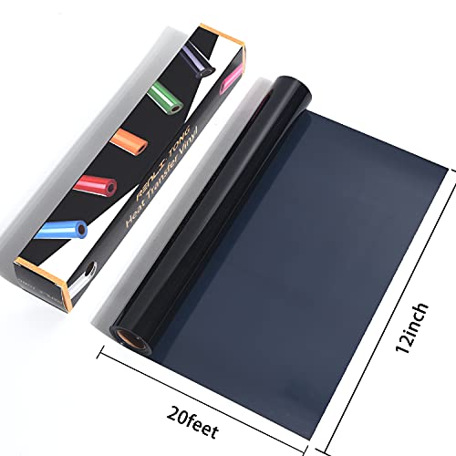 RENLITONG Black Iron on Vinyl 12Inch by 20ft Roll HTV Heat Transfer Vinyl for T-Shirt HTV Rolls for All Cutter Machine – Easy to Cut & Weed for Heat Transfer Design