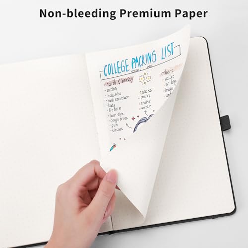 Specification: RETTACY Bullet Dotted Journal Notebook, 256 Pages, A5 Medium Size (5.7” × 8.3”), Leather Hardcover, 120 GSM Thick Paper, for Bullet Journaling, Planning, Tracking (Black)
