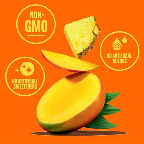STRAIGHT UP YUM: 100% juice with a splash of coconut water. A tropical twist of pineapple and mango