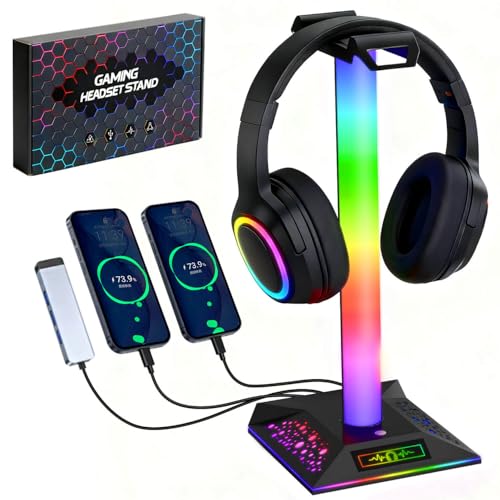 Specification: RGB Gaming Headset Stand, LED Headset Holder with 3 Charging Ports (2 USB & 1 Type-C) & 10 Lighting Modes, Headphone Stand Cool Stuff for Boys, Desk PC Gaming Accessories Gifts for Gamers Men Adult