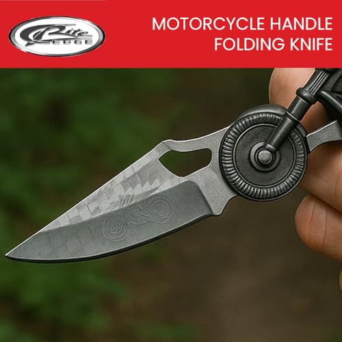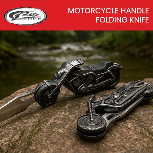 Unique Motorcycle Design: Eye-catching cast metal handle shaped like a motorcycle, perfect for collectors and bikers who love a cool knife or cool knife for men.