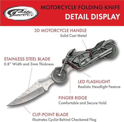 Specification: Rite Edge 4.75″ Motorcycle Folding Knife – Etched Stainless Steel Blade, Cast Metal Handle, Built-in LED Light – Collectible Pocket Knives & Folding Knives for EDC, Bikers, Camping & Outdoor Use, Pocket Knife for Men