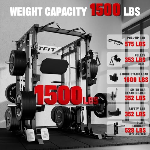 Specification: RitFit Buffalo Smith Machine, Power cage with LAT-Pull Down System & Cable Crossover System, All-in-One Squat Rack for Home Gym, Power Rack