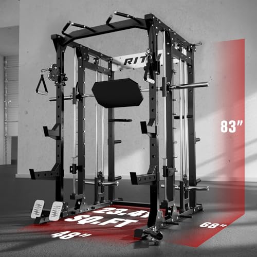 RitFit Buffalo Smith Machine, Power cage with LAT-Pull Down System & Cable Crossover System, All-in-One Squat Rack for Home Gym, Power Rack