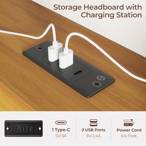 Built-In Charging Station – No more hunting for outlets or waking up to a dead phone. The bed frame headboard includes a built-in charging panel with 2 USB ports and 1 Type-C port, so you can power multiple devices at once—right from bed