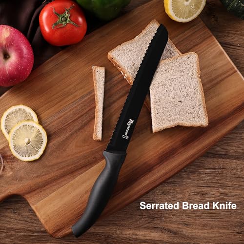 Non-Stick and Rust-Resistant: Each cooking knives feature a black coating that prevents food from sticking and protects the steel from oxidation; This makes cleaning a breeze and ensures long-lasting durability, even with frequent use