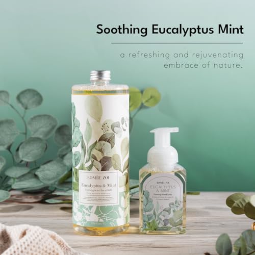 ROMIIE ZOI Eucalyptus & Mint Foaming Hand Soap Refills with Reusable Pump Dispenser – Natural & Cruelty-Free, Gentle & Moisturizing – Large Bottle Bulk for Home & Kitchen-1L/33.8oz (Pack of 3)