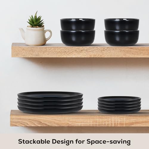 WHAT’S INCLUDED: This 16 piece stoneware dinnerware set features 4 x 10.3″ dinner plates, 4 x 8.5″ salad plates,4 x 12 oz mug and 4 x 5.5″(20oz) cereal bowls—everything you need for a service for 4. Elegant ceramic scratch resistant plate set dish set is suitable for households and special occasions and is ideal for casual meals, parties or formal dining. Providing versatility for daily meals, Ideal for salads, pasta, soups, desserts, and more