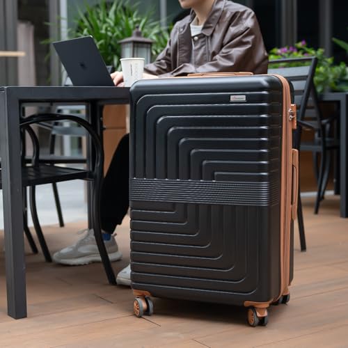 Romswi Expandable 26″ Medium Checked Luggage,Checked-Medium Hardshell Suitcase with Double Spinner Wheels for 20% More Space, Lightweight Hardside Luggage, Scratch-Resistant & YKK Zipper Black