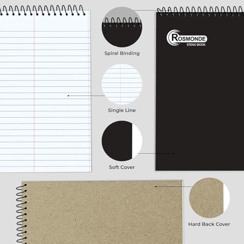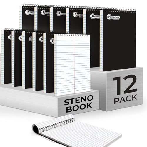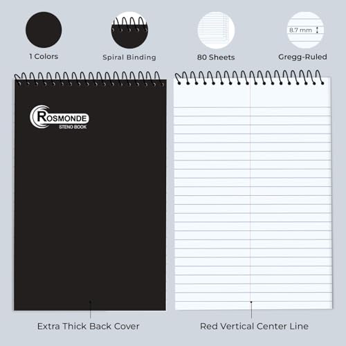 Specification: Rosmonde 12 Pack Spiral Steno Pads, 6 x 9, Gregg Rule, Black Steno Pad, Long Lasting – 80 Sheets (160 Pages), Top Spiral Notebook, Bulk Steno Notebook for Business, Top Spiral Steno Book for Office