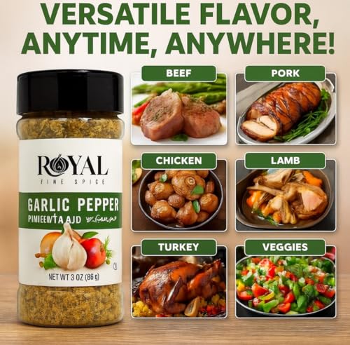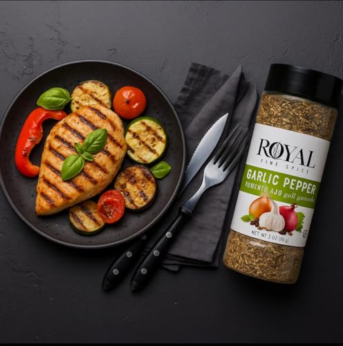Specification: Royal Fine Spice, Garlic Pepper Blend – 3oz | Burger Seasoning, Fish, Pork Chop, Mashed Potatoes | All-Purpose Steak Seasoning, Chicken, Pasta & Veggies | Made in USA – Low Sodium, pack of 3,
