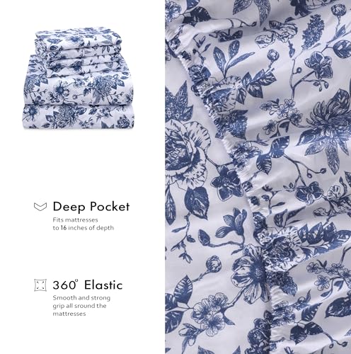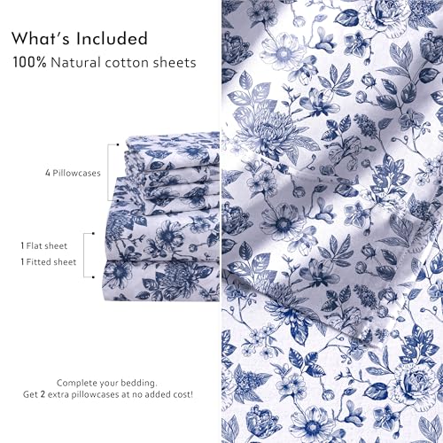 RUVANTI 6 Pcs Cotton Sheets – 100% Natural Cotton Soft, Lightweight & Breathable Crispy Percale Bed Sheets, Queen Sheet Set 16″ Deep Pockets, Wild Flower
