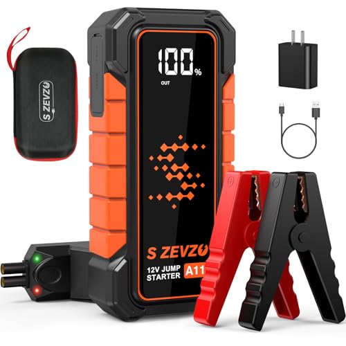 S ZEVZO A11 Jump Starter, Upgraded 5000A Car Battery Jumper Starter Portable (10.0L Gas & 7.0L Diesel Engines) with Booster 12V Lithium Jump Box with USB Charger, LCD Display, Flashlight, and Case