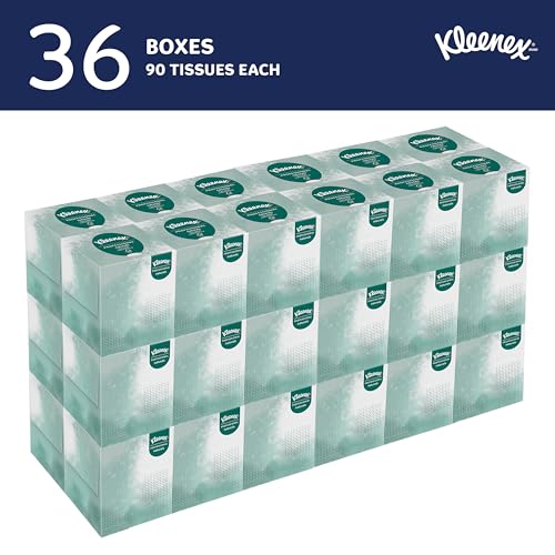 90 Tissues/Box, 36 Kleenex Naturals Facial Tissue Boxes/Case; 3,240 Tissues/Case; 2-Ply; White; Upright Facial Tissue Cube Boxes for Business
