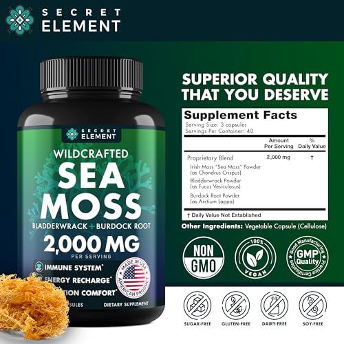 USA Quality: Irish Seamoss Bladderwrack Burdock capsules are made in the USA following the highest manufacturing standards. Our Sea moss pill are more absorbable compared to sea moss gel and sea moss gummies, containing no GMO, Gluten, or Preservatives