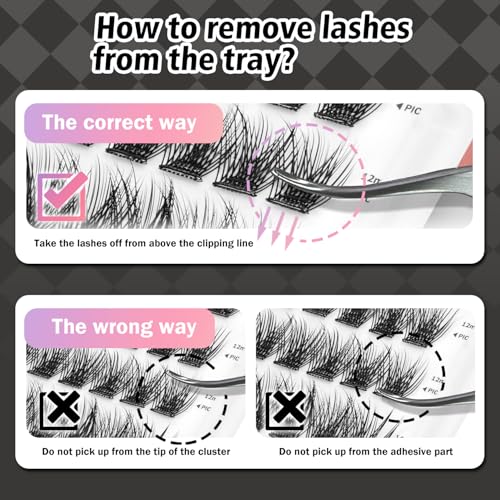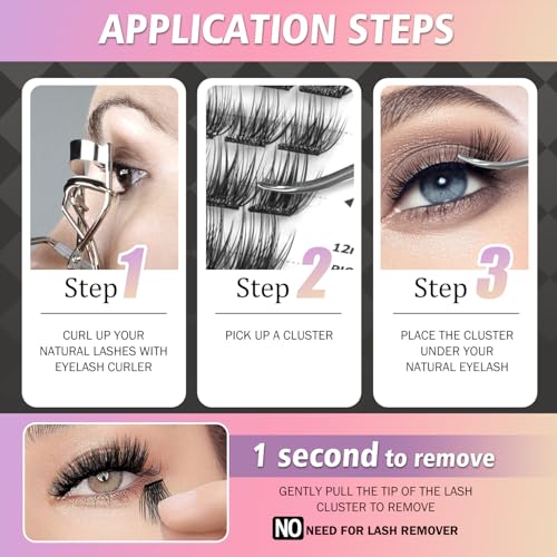 [Natural Invisible Lash Strip] These self-adhesive lashes belong to clear band lash clusters, the invisible band ensures a slim effect, soft and comfortable experience and blends seamlessly with your own eyelashes.