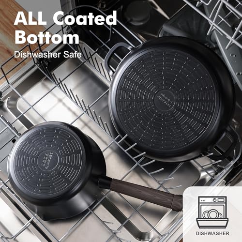 Specification: SENSARTE Nonstick Cookware Set Pots and Pans Set Kitchen Non-stick Cooking Set, Dishwasher & Oven Safe, Induction Compatible, Free of Intentionally Added PFOA/PFOS, 15pcs, Black