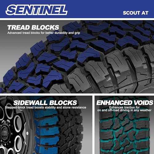 Specification: Set of 4 (FOUR) Sentinel SCOUT AT All-Terrain Light Truck/SUV Tires LT245/75R16 Load Range E (10 Ply) 120/116S – Includes 2-Year Road Hazard Warranty (Tire Only)