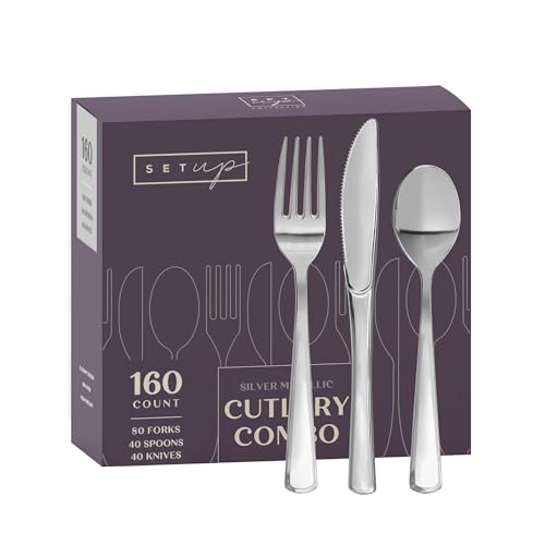 Specification: SETUP [160 Count] Disposable Silverware, Silver Combo Cutlery – 80 Forks, 40 Spoons, 40 Knives – Heavy Duty, and Durable Silver Plastic Silverware Set Great for Parties, Events and Everyday use