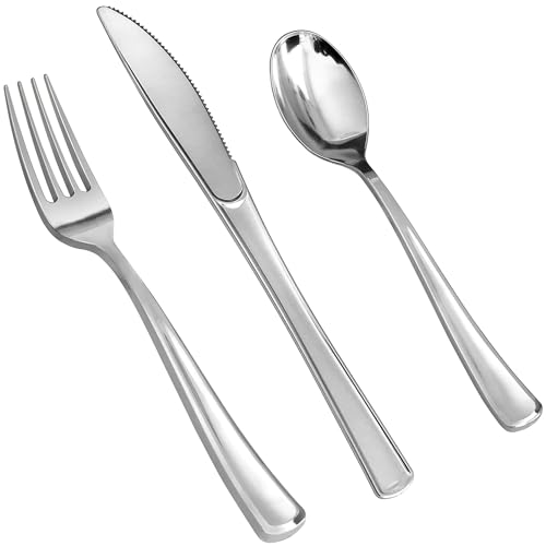 Disposable and Hassle-Free: Our disposable silver plastic utensils offer the ultimate convenience, allowing you to save valuable time on cleanup while maintaining a stylish presentation. Hosting events becomes stress-free and enjoyable with our hassle-free utensils, eliminating the need for washing dishes after gatherings. relax, and enjoy your event knowing that cleanup will be a breeze with our convenient disposable utensils.